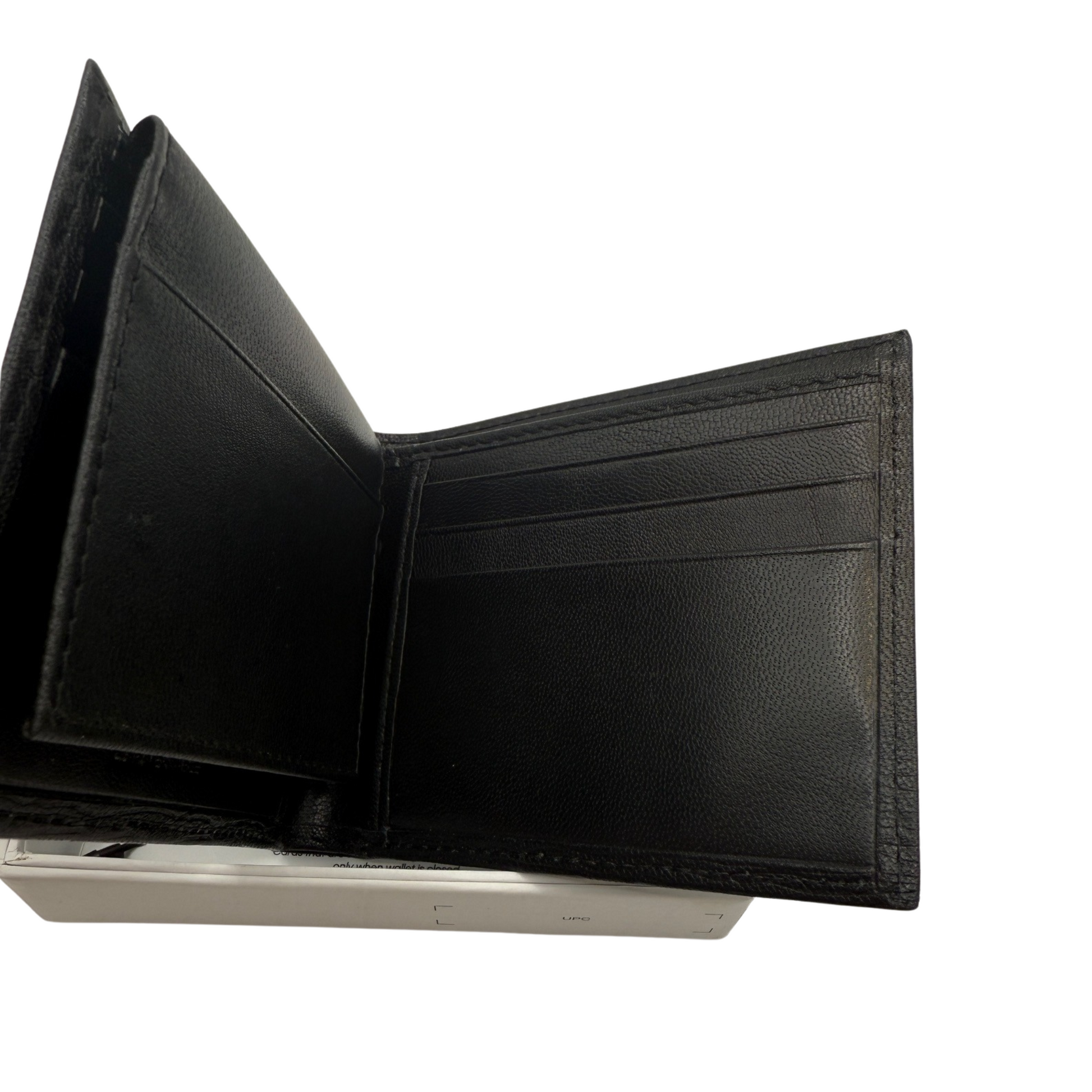 Crafted from smooth black calf leather, this Calvin Klein bifold wallet offers both style and security. Designed with RFID protection, it safeguards your cards from electronic pickpocketing. The wallet features a classic bifold layout for organized storage, and it arrives in its original box, making it ideal for gifting or personal use.