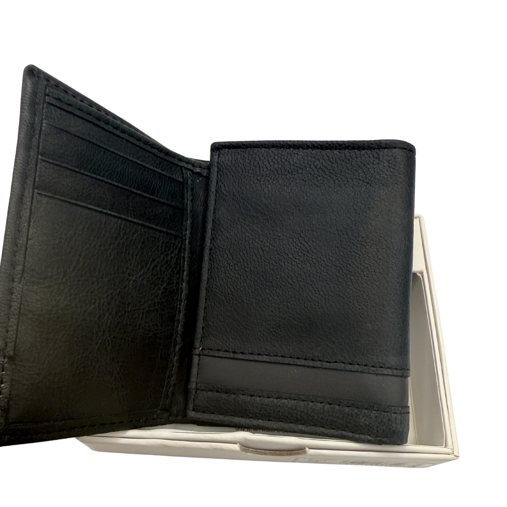 Crafted from premium black calf leather, this Calvin Klein trifold wallet offers a sleek and timeless design suitable for both men and women. Equipped with RFID protection, it safeguards your cards from unauthorized scans, enhancing your security. Compact yet spacious, it neatly organizes your essentials and arrives in its original box, making it an ideal choice for everyday use or gifting.
