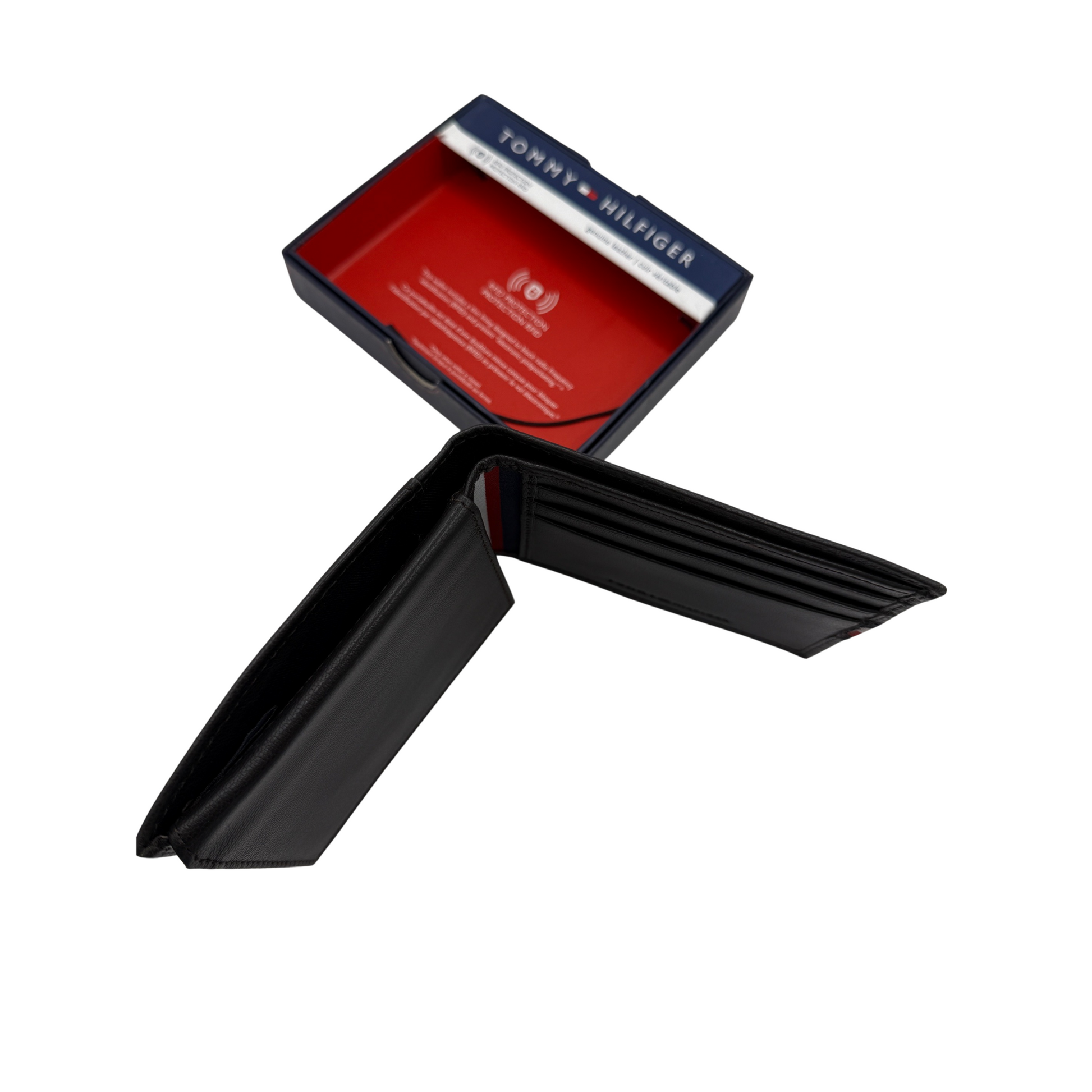 Crafted from premium dark brown calf leather, this Tommy Hilfiger bifold wallet combines timeless style with advanced RFID protection to safeguard your credit and debit cards from electronic theft. Its sleek, durable design offers ample space for cards and cash, making it a sophisticated and secure everyday essential for the discerning gentleman.